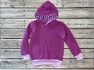 Kapuzenpulli aus rosa/beere gemustertem, superkuscheligem Alpenfleece. Die Innenseite ist herrlich weich, außen wie ein Sweatshirtstoff. Begrenzte Menge vorhanden.