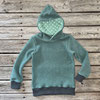 Superkuscheliger Kapuzenpulli aus Bio-Baumwollfleece in grün meliert. Kapuzenfutter aus Baumwolljersey. Bündchen Grobripp grau.