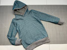 Sweatshirt oder Kapuzenpulli aus petrol meliertem Baumwollsweat. Kapuzenfutter aus Baumwollfleece. Bündchen grau.