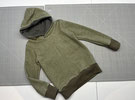 Sweatshirt oder Kapuzenpulli aus schilfgrünem Kuschelsweat aus Baumwolle. Kapuzenfutter ebenfalls aus Baumwollfleece. Bündchen Khaki.